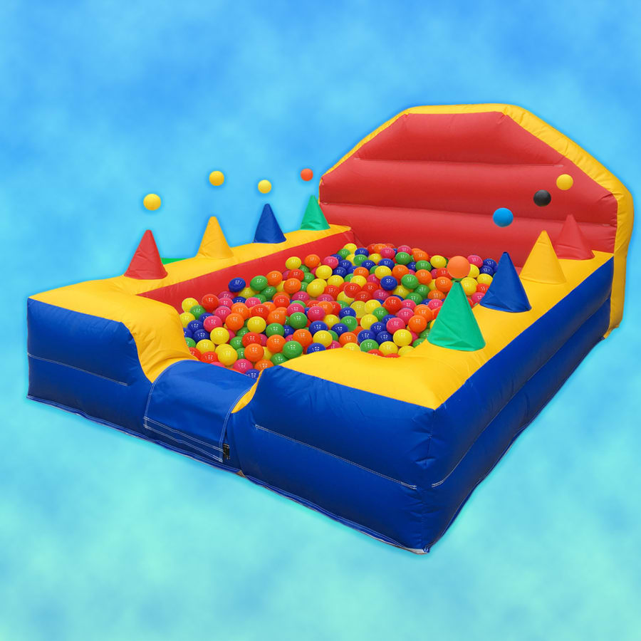 This open ball pond has 0.5m high inflatable walls with 8 magical air jugglers. Just watch the faces of your little guest light up with delight as they balance the brightly coloured balls onto the jets of air . The front wall has a lowered section that children can climb over to gain entry to the fun!