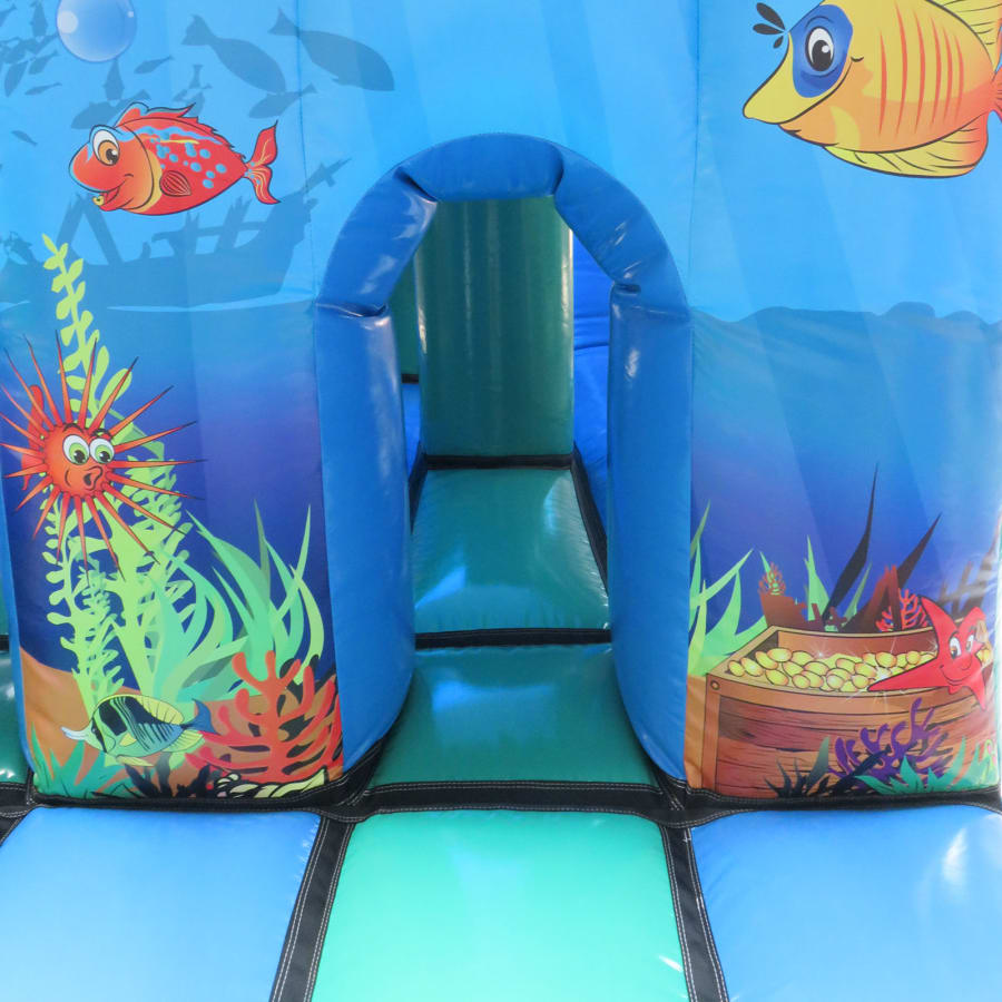 This activity fun run incorporates a bouncing area with biff & bash before you exit down the slide and run around to the start ready to do it all again!