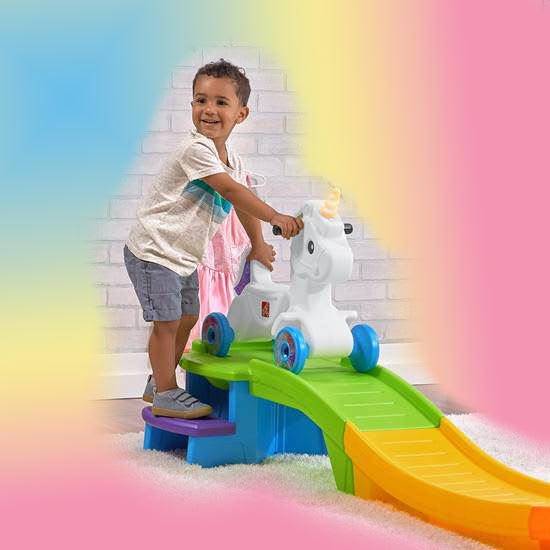 This Rollercoaster is supplied with nine feet of rainbow track for you to ride the fantasy unicorn down. It is suitable for use by children aged 2-5 with a maximum weight of 30lbs.