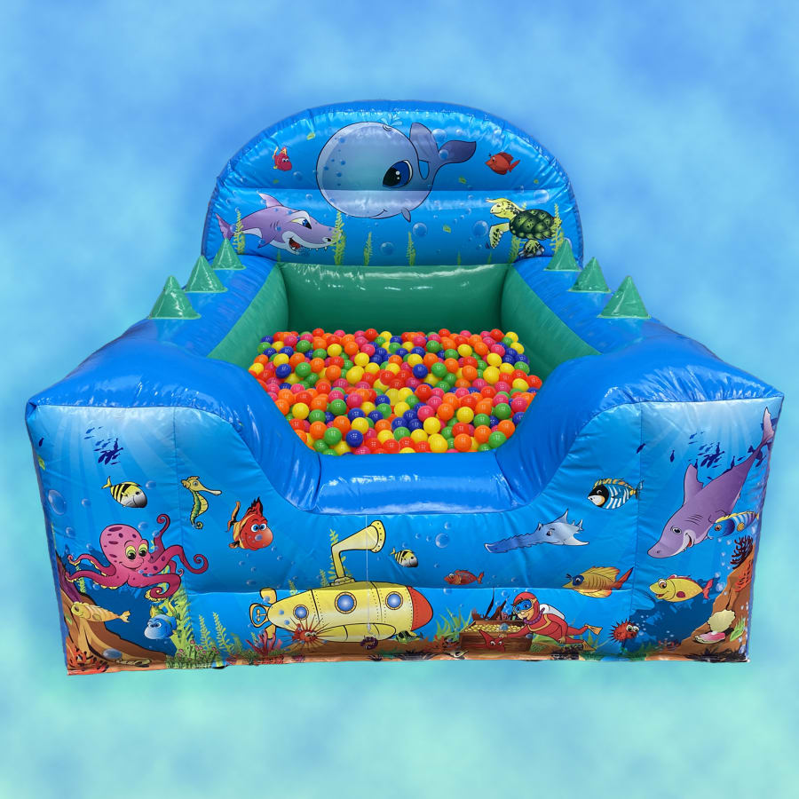 This open ball pond is themed to match our Ocean castle and Softplay, it has 6 magical air jugglers along the side walls. Just watch the faces of your little guest light up with delight as they balance the brightly coloured balls onto the jets of air . The front wall has a lowered section that children can climb over to gain entry to the fun!