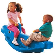 The rocking horse is suitable for children 1-3 years old and the Whale Teeter Totter can be used by up to three children aged between 18 months and 5 years.