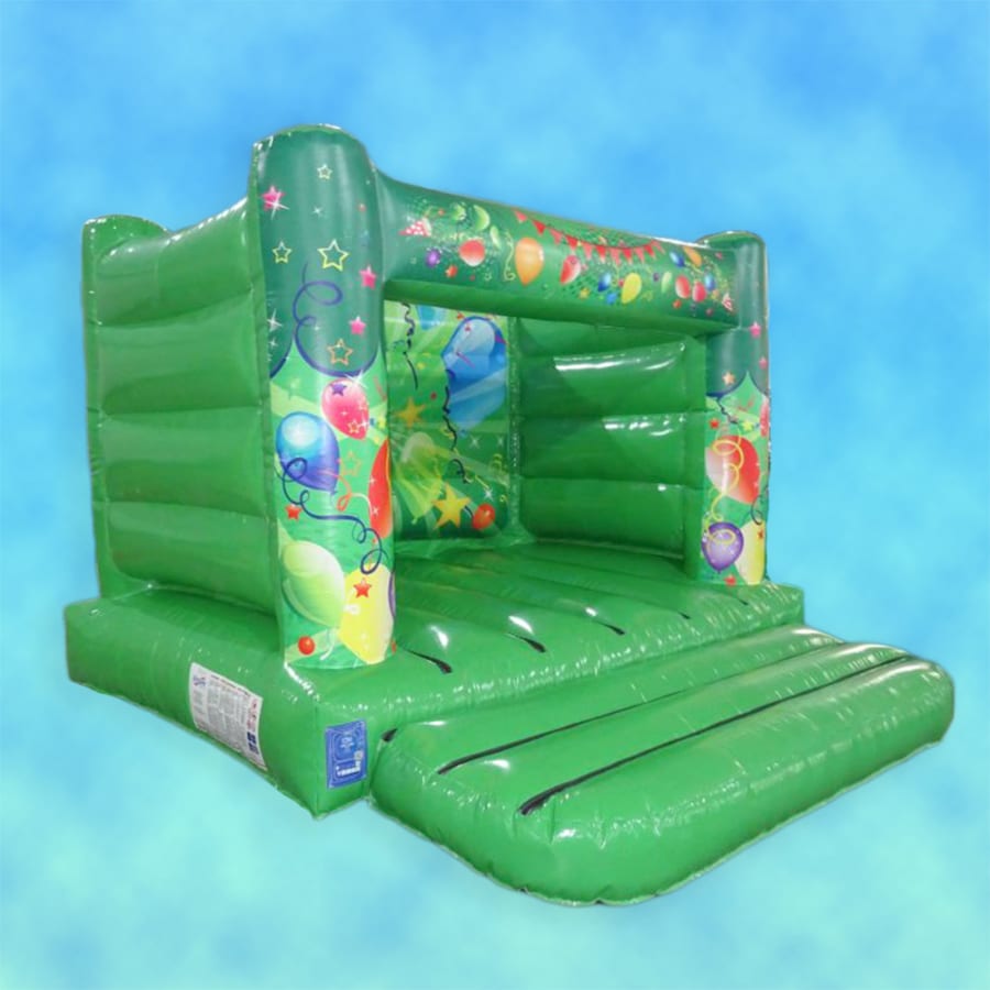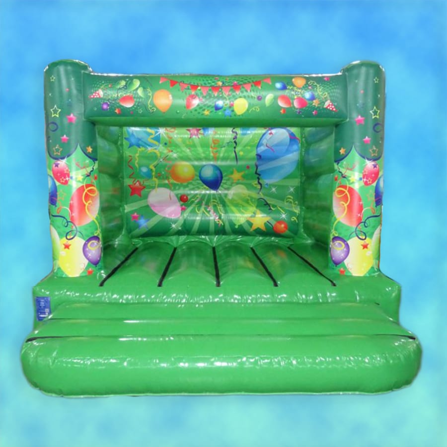 This castle boasts a gender neutral green colourway and is decorated with cheerful balloons and streamers making it the perfect choice for any type of celebration.
