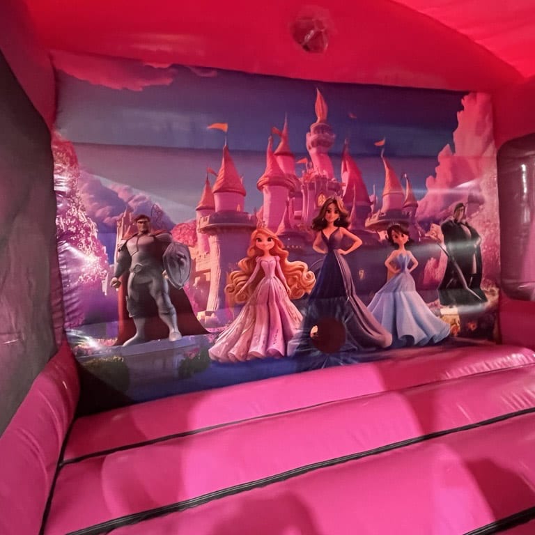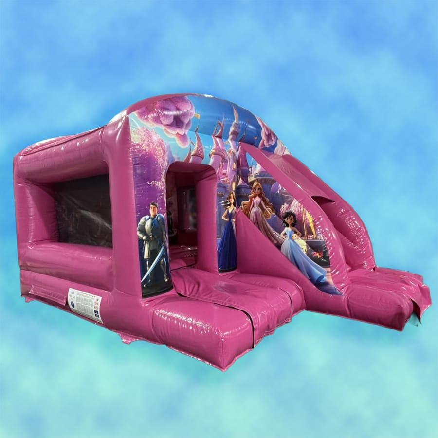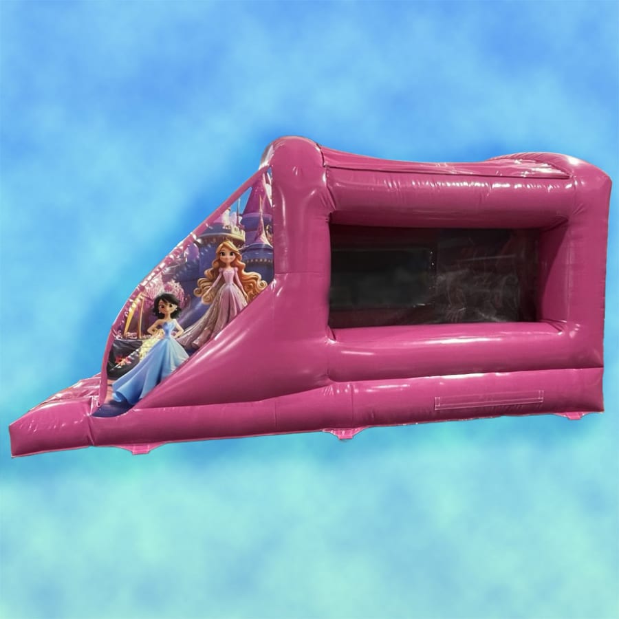 An ever popular Bounce n Slide but this time with a Pink Princess theme. Let your Princes and Princesses bounce amonst the cherry blossoms, clouds and castles. The artwork on this inflatable is absolutely stunning and the sides are netted giving maximum visibility into the castle, thus ensuring supervision is a breeze!