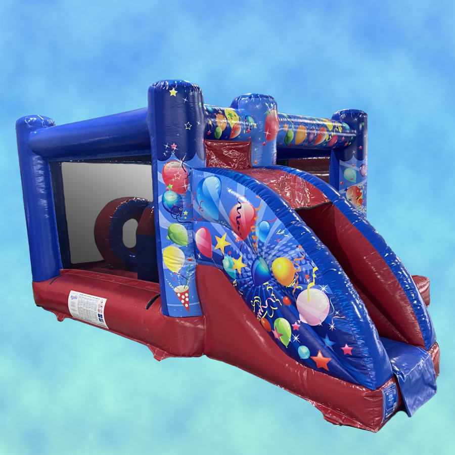This bright and colourful castle with it's cheery balloon design provides ample bouncing space but also has pop up's, biff and bash activities inside and a slide on the front to complete the fun. The all around netted sides ensure that the children can be easily watched whilst having fun.