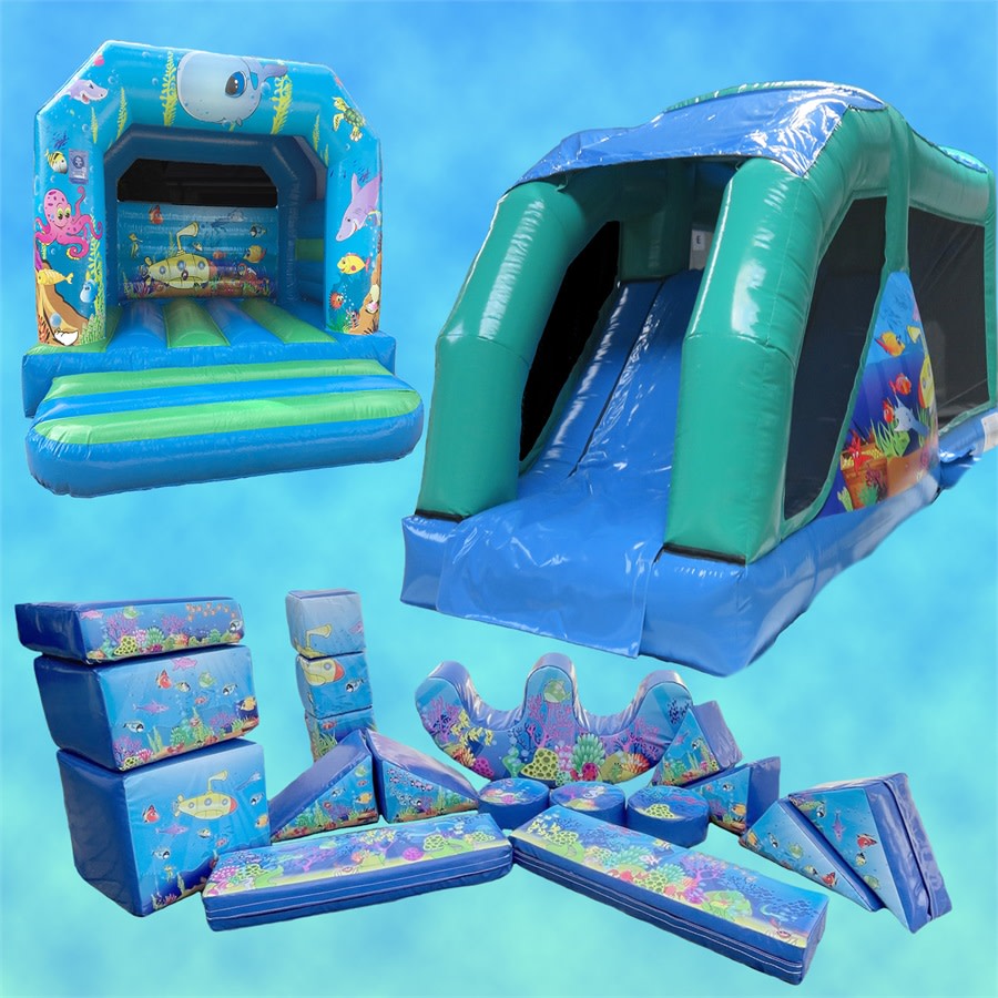 This package brings together the ever popular FunRun for the more energetic of your guests. The 12 x 12 Undersea Castle for the slightly less adventurous and the ocean themed soft play package for the tiny tots.
