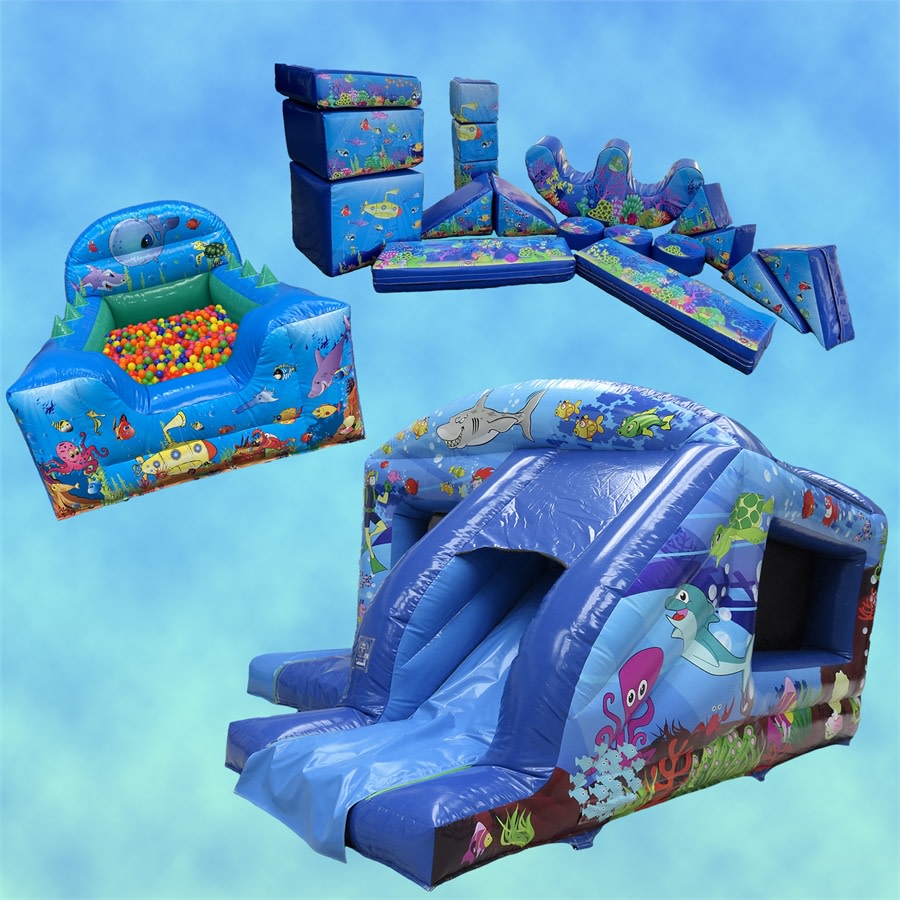 The awesome Ocean Bounce n slide combined with the Ocean Air Juggler Ball Pond and the Seaworld Softplay Set into one easy to book package.
