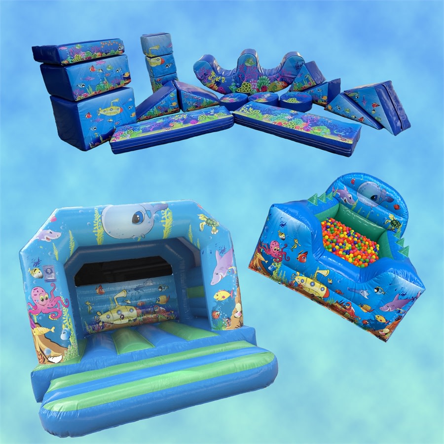 We've combined the Undersea Bouncy Castle 12ft x 12ft the Ocean Air Juggler Ball Pond and the Seaworld Softplay Set into one easy to book underwater themed package.